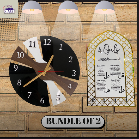 Exclusive Deal Bundle of 2 | 4 Qul Key Holder | Luxury Wall Clock