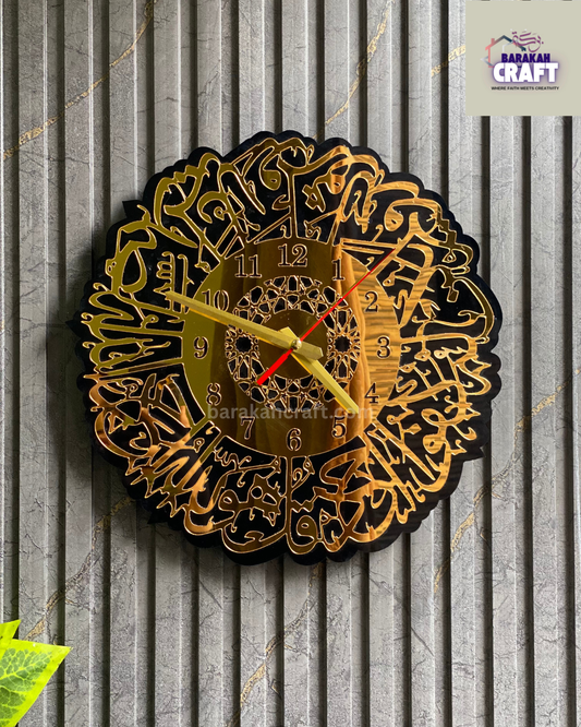 Surah Ikhlas Wall Clock | Premium Acrylic Gold and Transparent (12*12 inches)