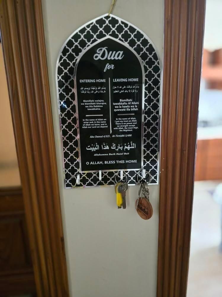 Bring blessings and faith into your daily life with our beautifully crafted Acrylic Key Holder, featuring a heartfelt dua for entering and leaving your home. Made from high-quality acrylic material, this key holder is designed to provide a elegant and functional way to store your keys