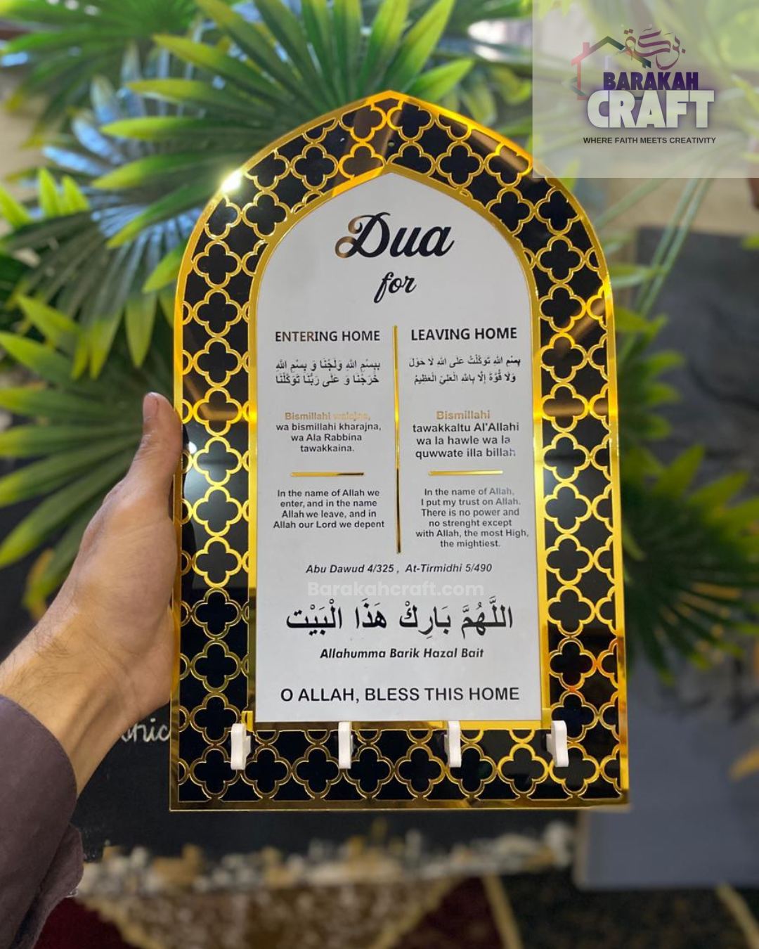 Bring blessings and faith into your daily life with our beautifully crafted Acrylic Key Holder, featuring a heartfelt dua for entering and leaving your home. Made from high-quality acrylic material, this key holder is designed to provide a elegant and functional way to store your keys