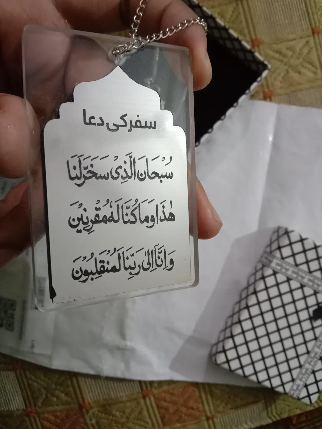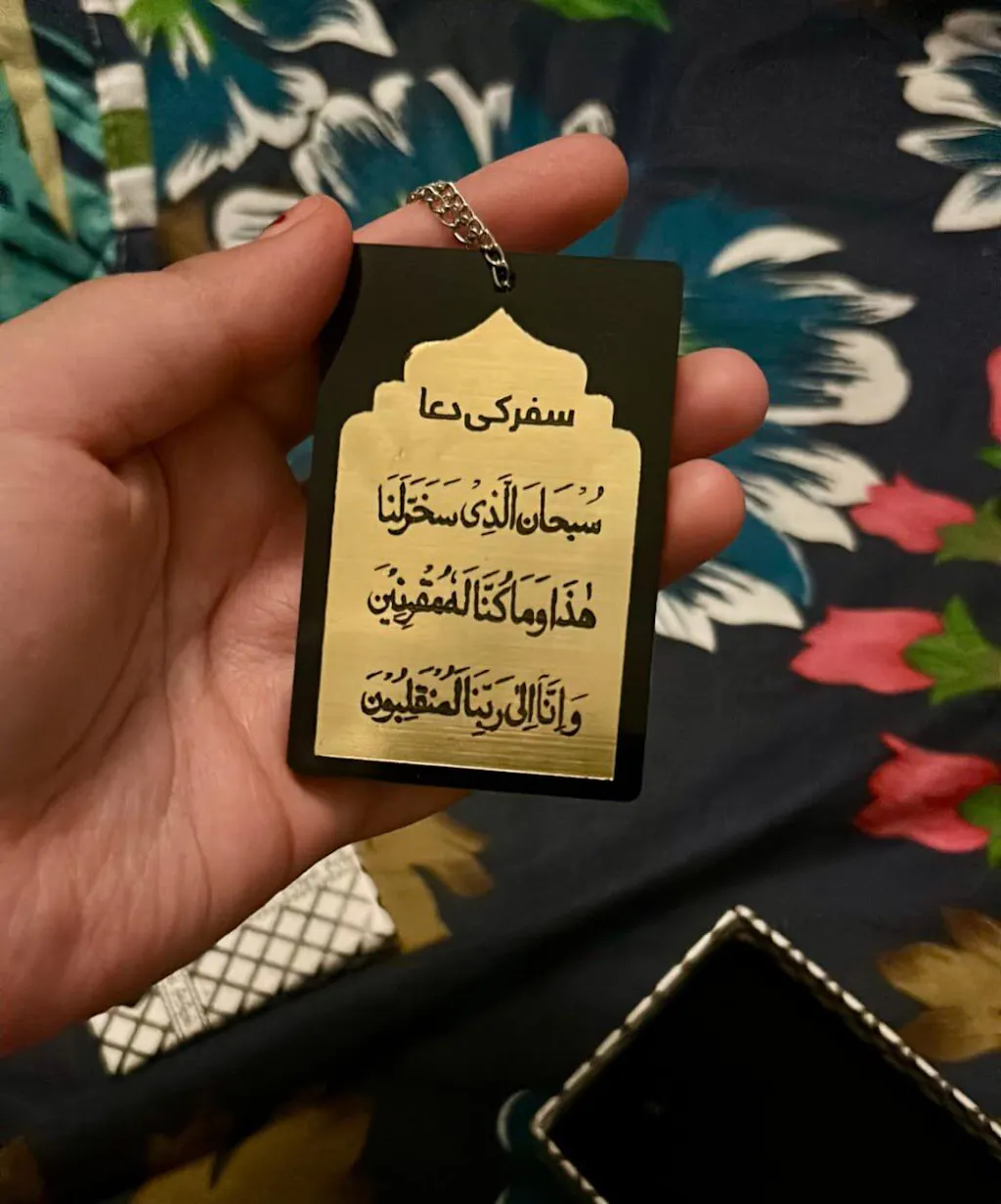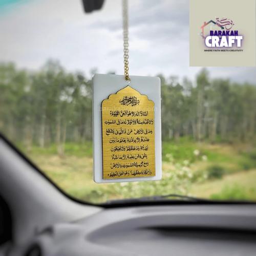 Bring protection and blessings to your car with our stylish Islamic car Hanging made from high-quality acrylic Crafted with incredible precision and care, hence each and every letter of the noble writings is crystal clear to read considering the size of the ornament. It is Double Sided with One Side Ayat ul Kursi (strong protective verse) and Other Side Safar Ki Dua (prayer for prosperity and blessings).